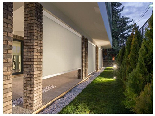 湘联防风织物卷帘属于卷辊遮帘,包括卷帘布、卷轴、端头、拉绳装置、防护盒、垂条,端头与防护盒固接,垂条为软质材料制成,固定在卷帘布的下方。安全可靠,卷轴不会砸伤人,下雨时将卷帘布收到防护盒内使其免受雨淋,安装方便,再加上其精致的外观,优异的抗风性能,深受市场的欢迎。